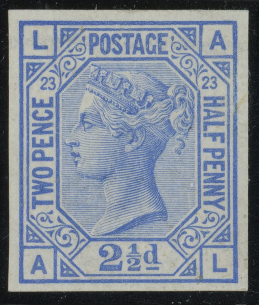 £2,500.00| /Great Britain 1881 2½d blue Plate 23 imprimatur, SG157var. A very fine unused, with original gum, imperforate imprimatur lettered 'AL'. A very rare...