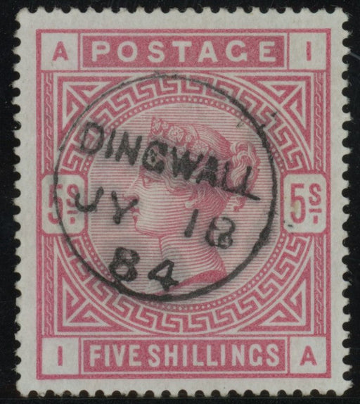 £3,250.00| /Great Britain 1884 5s rose (Blued Paper), SG176. A very fine used example lettered 'IA', neatly cancelled by a crisp Dingwall circular date stamp f...