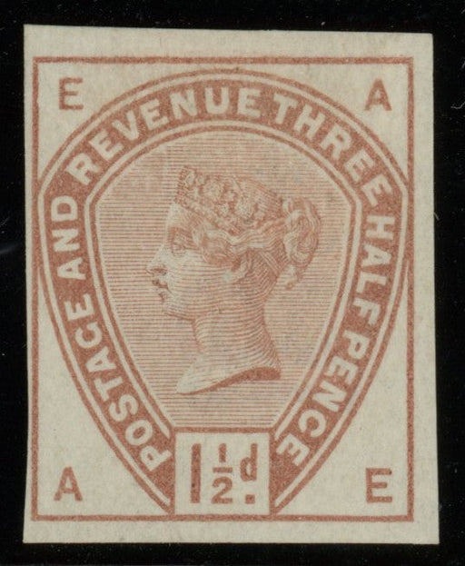 £2,000.00| /Great Britain 1884 1½d Colour Trial, SG188var. A very fine imperforate example printed on white gummed Crown watermarked paper in red brown lettere...