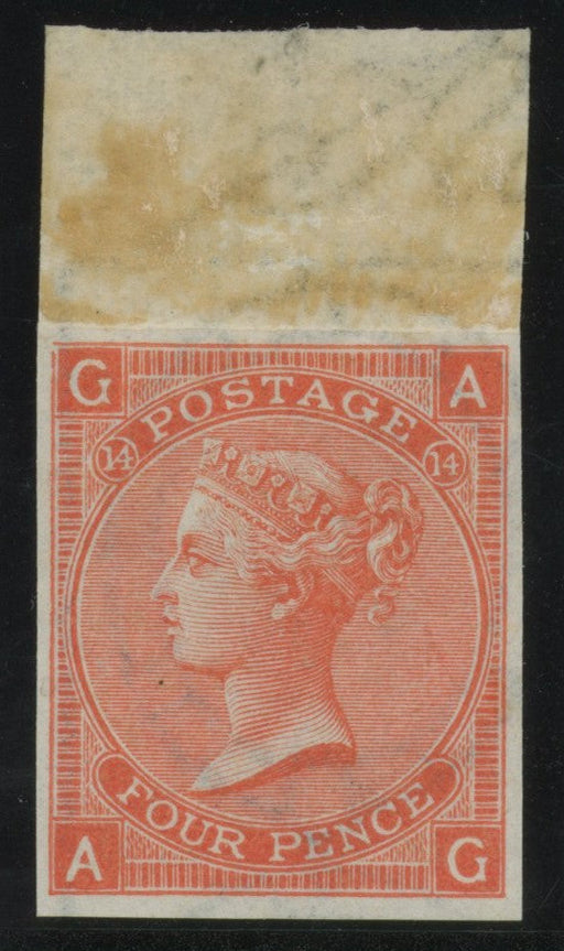 £2,500.00| /Great Britain 1872 4d vermilion Plate 14 imprimatur, SG94var. A very fine unused, with original gum, top marginal imperforate imprimatur lettered '...
