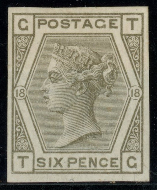 £2,250.00| /Great Britain 1882 6d grey Plate 6 imprimatur, SG161var. A very fine and fresh imperforate imprimatur, with large part original gum, lettered 'TG'....