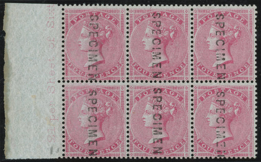 Great Britain 1856 4d carmine PIate 1, (Watermark Medium Garter) Specimens, SG63s