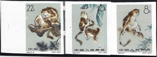 £250.00| /China 1963 People's Republic General Issues, Snub-nosed Monkeys, SG2121i/23i. A pristine unmounted mint imperforate set of 3 with margin at left, w...