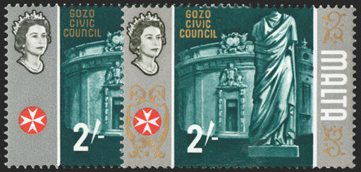£170.00| /Malta 1965-70 2s "Gozo Civic Council', error ‘Gold (centre) omitted‘, SG343a. A pristine unmounted mint example with full original gum. A scarce er...