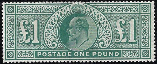 £3,000.00| /Great Britain 1902 £1 Dull blue green, SG266. An exceptionally fine and fresh unmounted mint example with full original gum, printed by De La Rue. ...