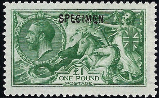 Great Britain 1913 £1 Green "Seahorses", Specimen SG403s