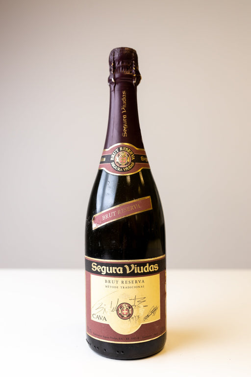 £1,950.00| /A rare bottle of Segura Viudas, Brut Reserva sparkling wine, signed attractively by Fidel Castro on the front label. Castro has added “Natty” on th...