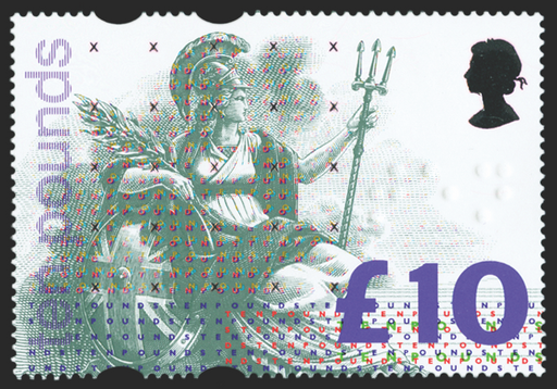 £40.00| /Great Britain 1993 £10 Britannia, SG1658. A superb unmounted mint example with full original gum. The paper used for the £10 Britannia stamps cont...
