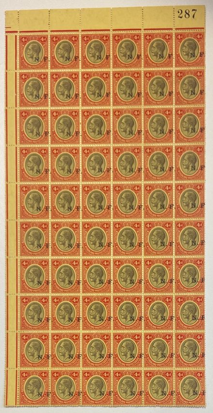 £1,750.00| /Tanganyika (Nyasaland-Rhodesia Field Force) 1916 4d black and red on yellow paper, SGN4. A very fine mint right pane of sixty, with selvedge at lef...