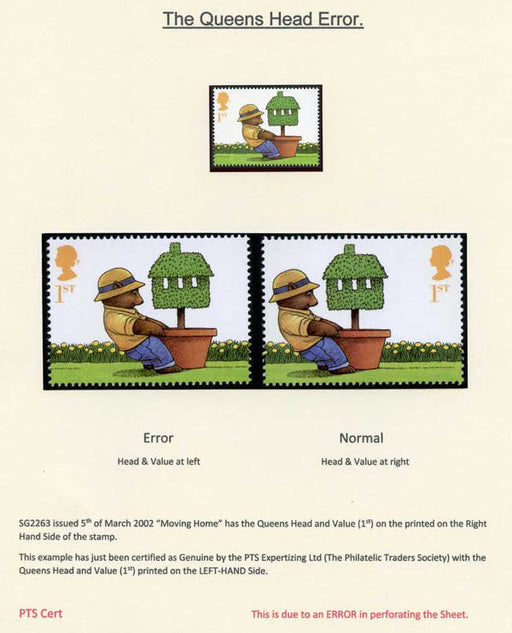 £350.00| /Great Britain 2002 1st Bear pulling Potted Topiary Tree (Moving Home) 'The Queen's Head error", SG2263var. Post Office fresh unmounted mint example...