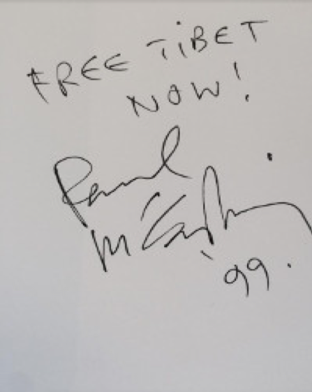£3,500.00| /A copy of a book by Richard Gere signed by Paul McCartney with the words “Free Tibet Now/ Paul McCartney/ ‘99”.