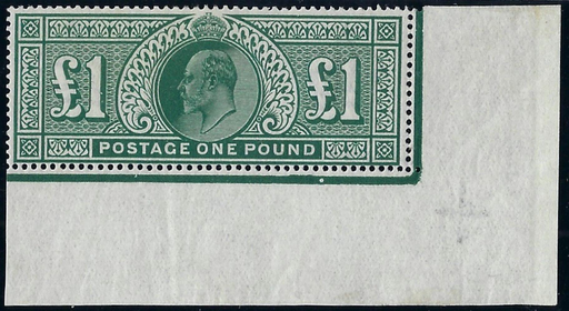£3,500.00| /Great Britain 1911 deep green, SG320. A very fine and fresh unmounted original gum corner marginal example printed at Somerset House from plate 1a....
