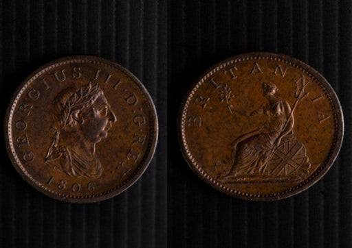 £175.00| /Copper Penny, 1806, small laureate and draped bust right, incuse hair curl to right oftie knot, date below, Latin legend and toothed border surroun...