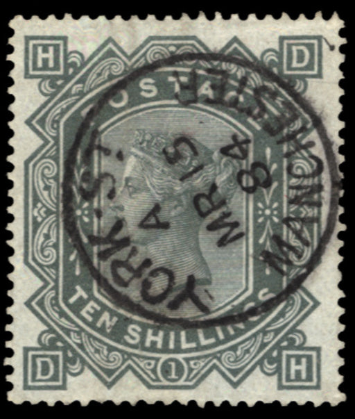 Great Britain 1882 Queen Victoria Surface Printed, 10s greenish-grey plate 1. SG135