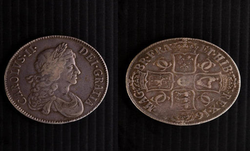 £425.00| /Silver Crown, 1671 second laureate and draped bust right, Latin legend and toothedborder surrounding, CAROLVS. II. DEI. GRATIA, rev. crowned crucif...