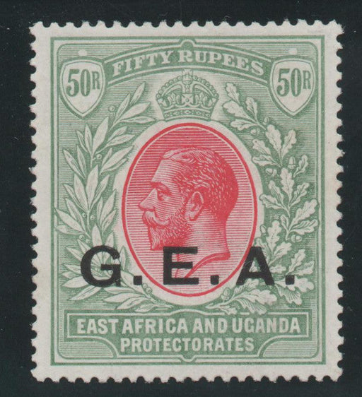 £650.00| /Tanganyika 1917-21 "German East Africa" 50r carmine and green, watermark MCA, SG62. A mint example with original gum. Fantastic fresh quality and w...