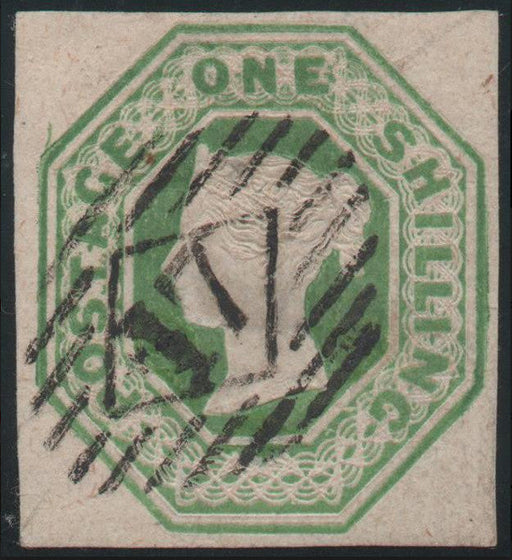 £900.00| /Great Britain 1854 1s. green embossed, SG55. A superb used example with good margins all round, rarely seen in such quality. The Stanley Gibbons ca...