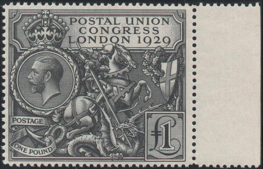 £850.00| /Great Britain King George V 1929 £1 Postal Union Congress (P.U.C.) black, SG438. A superb right hand marginal unmounted mint example. A stunning qu...