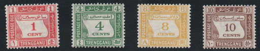 Malaya - Trengganu 1937 (10 Aug) 1c-10c watermark multiple script CA (sideways), perforations 14, complete set of four postage dues
