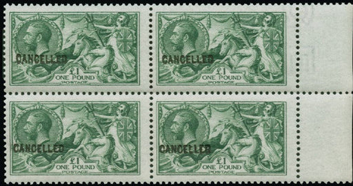 £16,500.00| /Great Britain King George V 1914 (Dec) £1 yellowish-green, SG403var. Pristine unmounted original gum right hand marginal block of four colour trial...