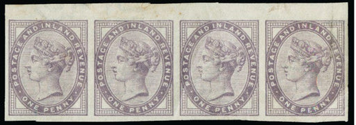 £13,750.00| /Great Britain 1881 1d mauve (Die 2), SG174a. Very fine and fresh good to large four margin top marginal unused original gum imperforate horizontal ...