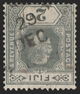 £275.00| /Fiji 1912-23 2d greyish slate, watermark MCA, variety with watermark inverted, SG128w. A lightly used example of this rare watermark variety with ...