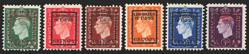 £1,100.00| /Grenada 1944 German propaganda forgeries of Great Britain 1937-47 set of 6 to 3d, each with boxed overprint 'LIQUIDATION OF EMPIRE/GRENADA' in red ...