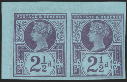 £17,500.00| /Great Britain 1887 2½d Purple/Blue "Jubilee", SG201c. Very fine mint, with original gum, imperforate top left hand corner marginal horizontal pair ...