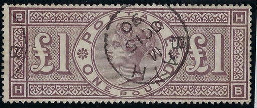 £1,750.00| /Great Britain 1884 £1 Brown-lilac Plate 1 (Watermark Three Imperial Crowns), SG185. A very fine used example lettered HB, neatly cancelled by a cr...