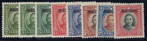 £300.00| /China Szechwan Province 1933-34 Dr. Sun Yat-sen issue with thick circle, overprint at Peking, set of 8 to $5 blackish green and scarlet, SG4/11. A...