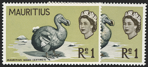 £300.00| /Mauritius 1965 Birds 1r light yellow-olive 'Dodo', error with PALE ORANGE OMITTED, SG328a. A very fine and fresh unmounted mint example with full o...