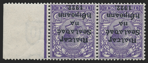 £325.00| /Ireland 1922 3d violet, Thom overprint type 2, horizontal pair with sheet margin at right, variety WATERMARK INVERTED AND REVERSED, SG36y. A very f...