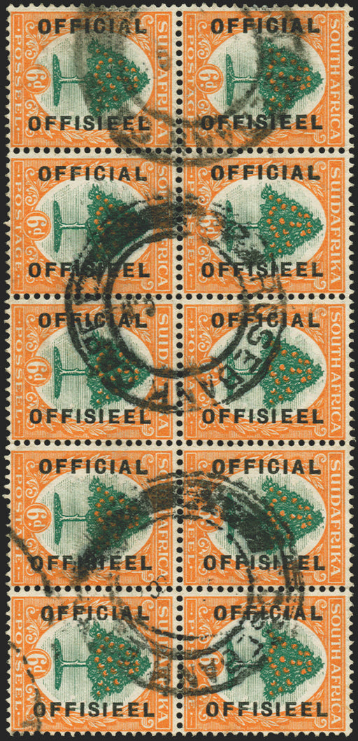 £175.00| /South Africa 1928-30 6d green and orange "Orange Tree" Official, Pretoria typo printing with type O1 overprint (reading upwards without stops), blo...