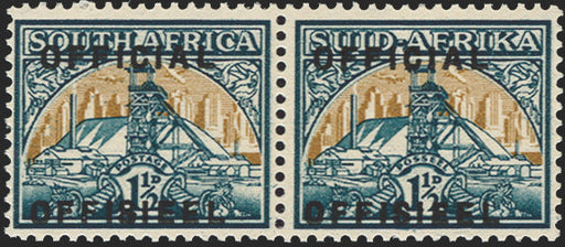 £950.00| /South Africa 1944-50 1½d blue-green and yellow-buff "Gold Mine" Official, HORIZONTAL type O2 overprint (11-12mm space, as used for ½d value in vert...