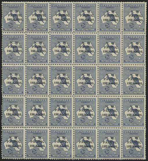 £225.00| /New Guinea 1918-22 2½d indigo, die II, type 11 overprint, complete pane of 30 (6x5), without margins as always (removed before overprinting), SG107...