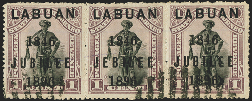 £495.00| /North Borneo Labuan 1896 Jubilee of Cession of Labuan to Great Britain 1c black and grey-mauve, type 16 overprint, perforations 14½-15, horizontal ...