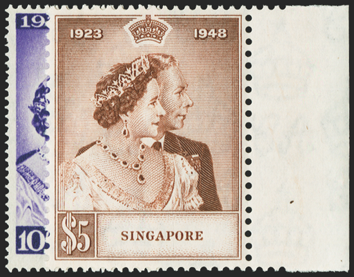 SINGAPORE 1948 Royal Silver Wedding 10c and $5, SG31/2