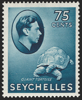£85.00| /Seychelles 1938-49 75c slate-blue, "Giant Tortoise", SG145. A fresh and very fine unmounted mint example with full original gum. A scarce stamp in ...