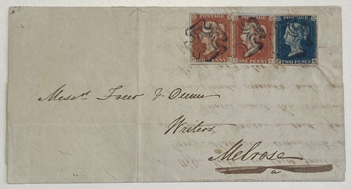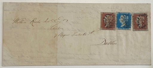 Great Britain 1840 2d blue combination usage with 1841 1d red-brown