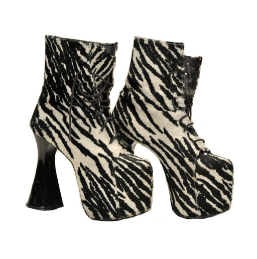 £750.00| /A pair of Cher's stage-worn platform shoes in zebra print Cher began her career in the 1960s alongside then husband Sonny Bono. The duo had a str...