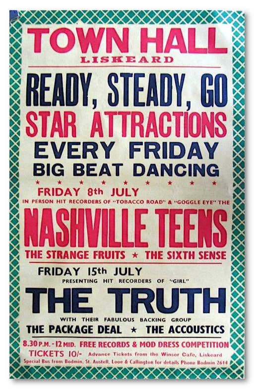 £450.00| /A scarce original 1966 poster advertising the Nashville Teens at the town hall in Liskaerd, Cornwall, UK. British band the Nashville Teens had tw...