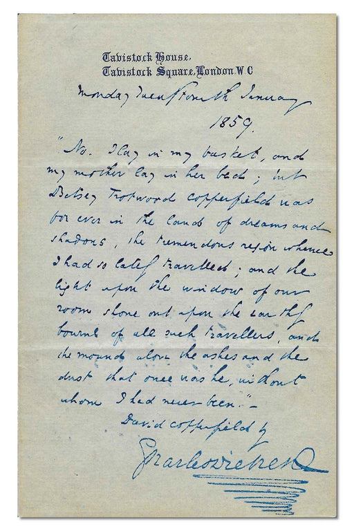 £29,995.00| /A signed, handwritten quotation by author Charles Dickens (1812-1870), the greatest English novelist of the Victorian age. Dated January 24, 185...