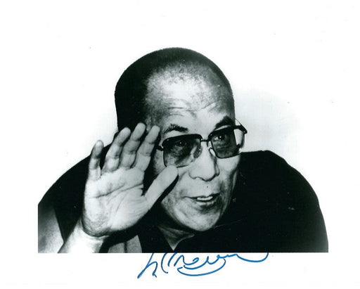 £750.00| /A striking signed black and white signed photo from the present Dalai Lama (1935-). 25.5cm x 20.5cm The 14th Dalai Lama has signed handsomely in ...