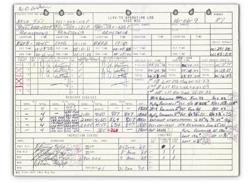 Neil Armstrong Apollo 11 NASA flight log signed six times