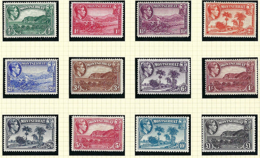 £90.00| /Montserrat King George VI 1938-48 Watermark Multiple Script CA ½d to £1 black set of 12, SG101a/112. A lovely quality lightly mounted mint set with...