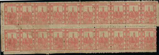£4,000.00| /China 1893 (Dec) (Shanghai), Chungking Local Post "Pagoda and Junk" 2ca red-orange, perforations 12½, SGM1. Block of twenty comprising two comple...