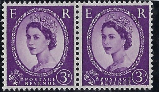 £700.00| /Great Britain 1959 3s Deep Violet "Dollis Hill Phosphor Trial", SG575var. Very fine perforated horizontal pair on gummed crowns watermarked (upri...