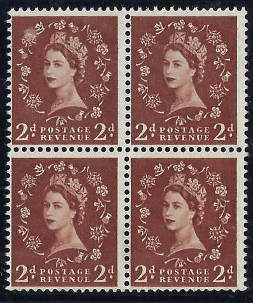 £1,200.00| /Great Britain 1958 2d Light red brown (Crisp print) "Dollis Hill Phosphor Trial", SG573var. Very fine perforated block of 4 on un-gummed un-waterm...