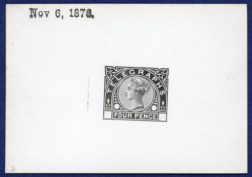 £650.00| /Great Britain 1876 4d Telegraphs die proof, SGT5VAR. A very fine and fresh example printed in black on white glazed card (91x60mm), dated "Nov 6 18...