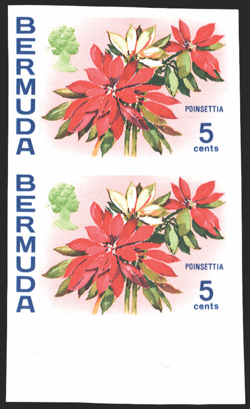 £600.00| /Bermuda 1970-75 5c 'Poinsettia', SG253var. A Post Office fresh lower marginal vertical IMPERFORATE PAIR, unmounted mint with full original gum. Iss...